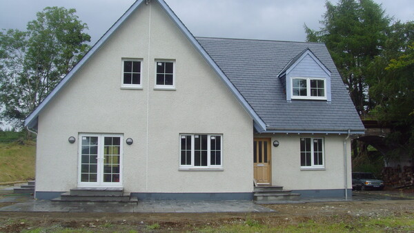 In 2009 we were contracted to do the building and joinery work on this house in Invergarry, which included making the timber frame on-site. This five bedroom, story and a half property is finished with hardwood floors throughout, oak staircase and finishings.